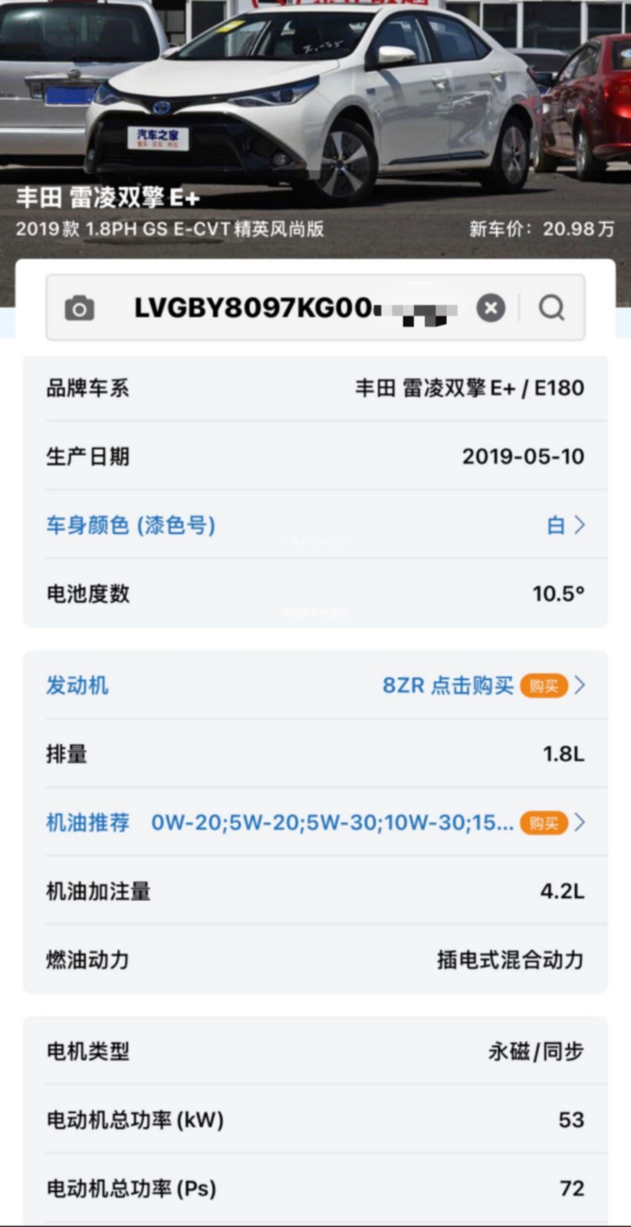 • 出,19年丰田雷凌车,正规单车,雷凌双擎E+,19款 1.8PH GS E-CVT精英风尚版 新车价:20.98万 车况精品 整车配件价出物流全国👌电话微信:15738871127